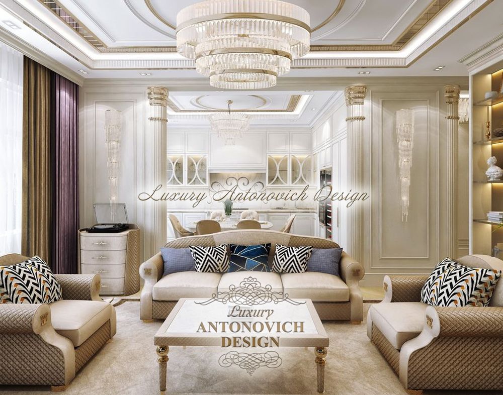 новом дизайн проекте квартиры мягкий шлейф ар деко сопровождает мотивы